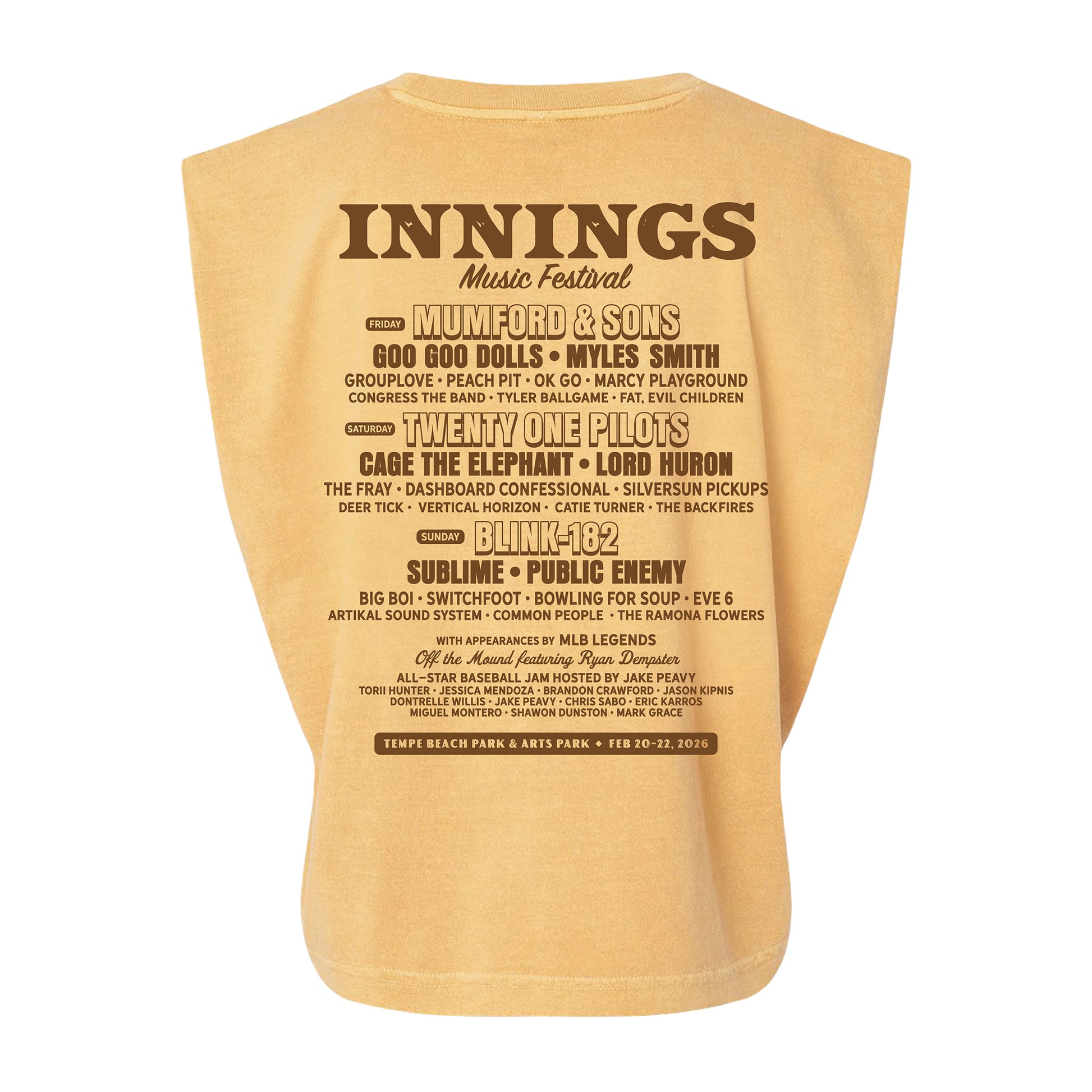 Rock out in style with this Women's Desert Lineup Crop Tank, the perfect festival essential for Innings Music Fest fans. Featuring an Arizona desert design with cacti horns, this boxy-fit tank celebrates the spirit of live music. Crafted from 100% soft cotton, it's comfortable enough for a full day of desert vibes and festival fun. Whether you're catching your favorite acts or exploring the grounds, this unique tee keeps you cool and festival-ready.